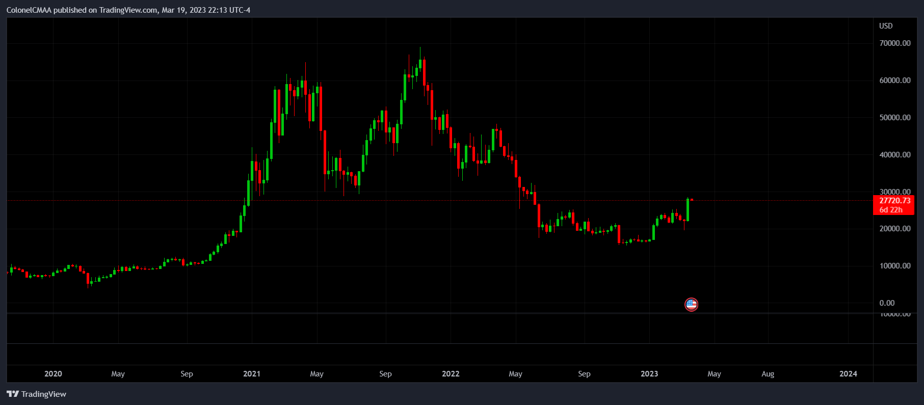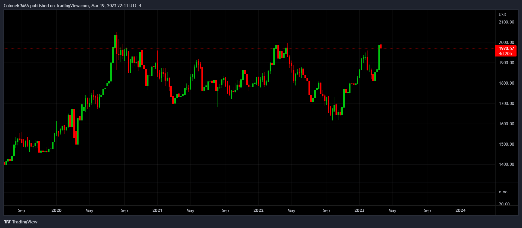 Past performance doesn't indicate future performance but we might be looking at a potential uptrend its catalyzer being the risks regarding the current banking system in a high-interest rates environment.