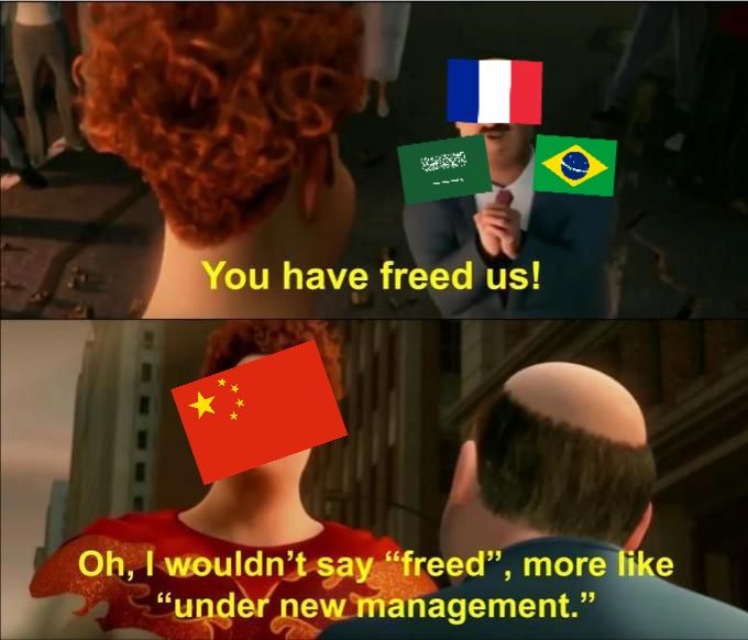 If it wasn't that bad already the same day the Saudi-Chinese pact happened, Brazil the biggest and most populous country in South America struck a deal with China. The deal, announced Wednesday, will enable China and Brazil to carry out trade and financial transactions directly, exchanging yuan for reais – or vice versa – rather than first converting their currencies to the U.S. dollar. This is a huge blow to US hegemony especially in South America which has been for years considered America's backyard.